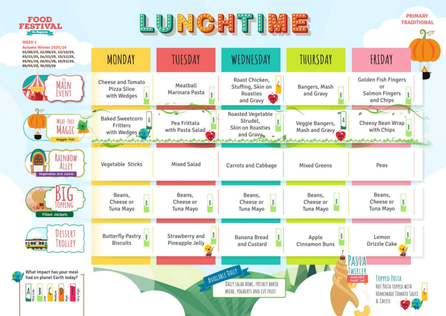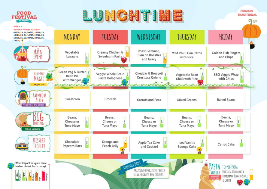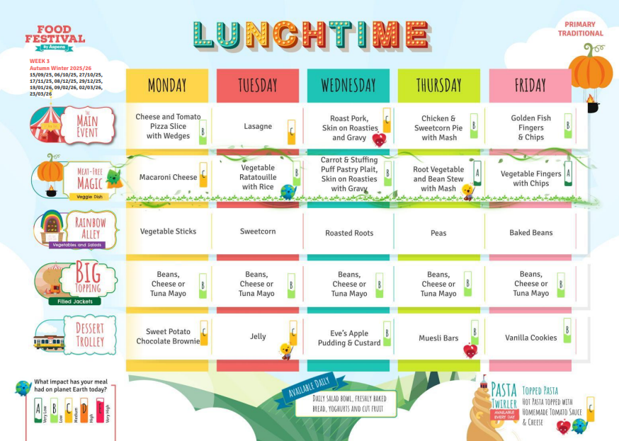 We currently operate a 3 weekly menu selection with children able to pre-order their preferred option. Please see the sample menus below.