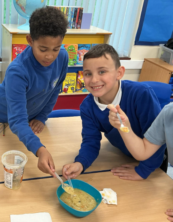Year 3/4 have had a busy week, working on art to start the week then having visitors coming in for Building Future Careers. They have finished the week off trying different soups and getting a taste for new flavours.